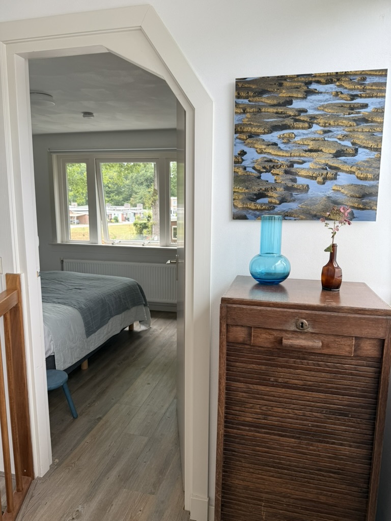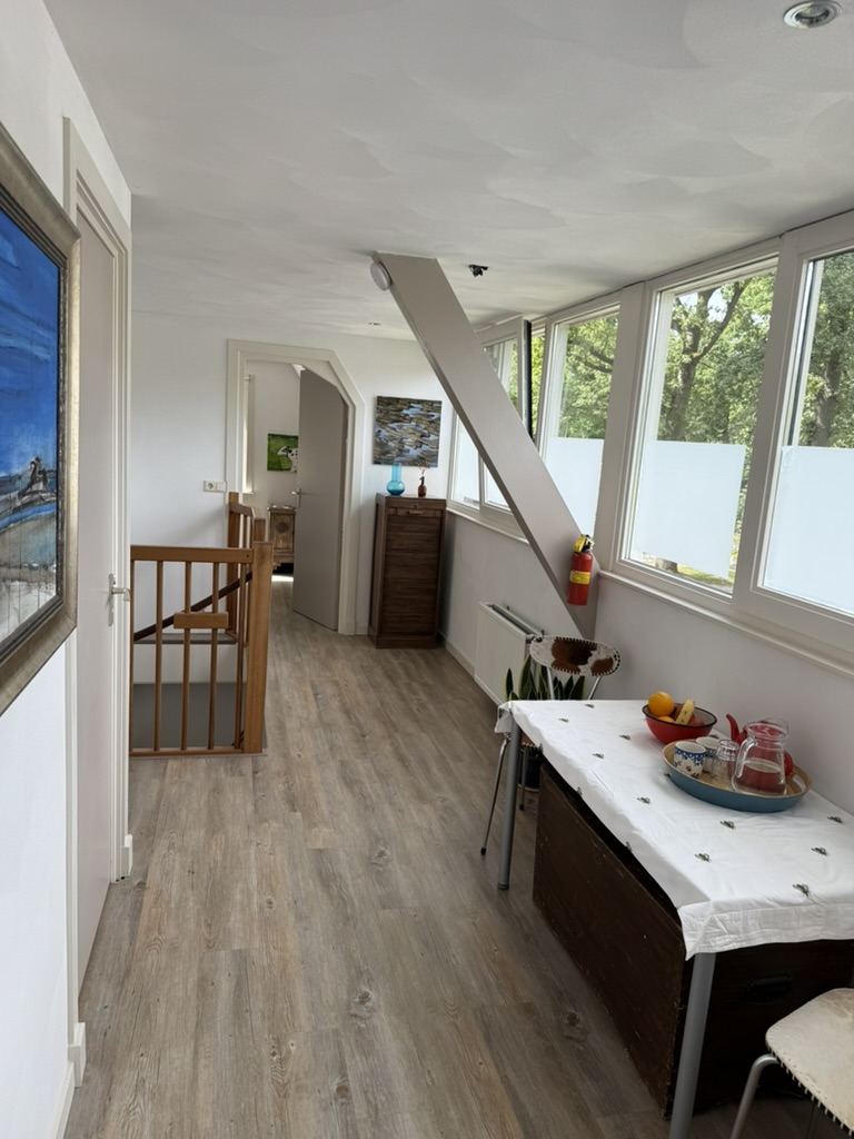 Hier wat foto’s van B&B de Wielewaal. Eigen opgang, hele etage met ruime badkamer (douche, toilet én ligbad), kamer met 2-persoonsbed en extra kamer met zitplek en evt. 2 extra bedden.